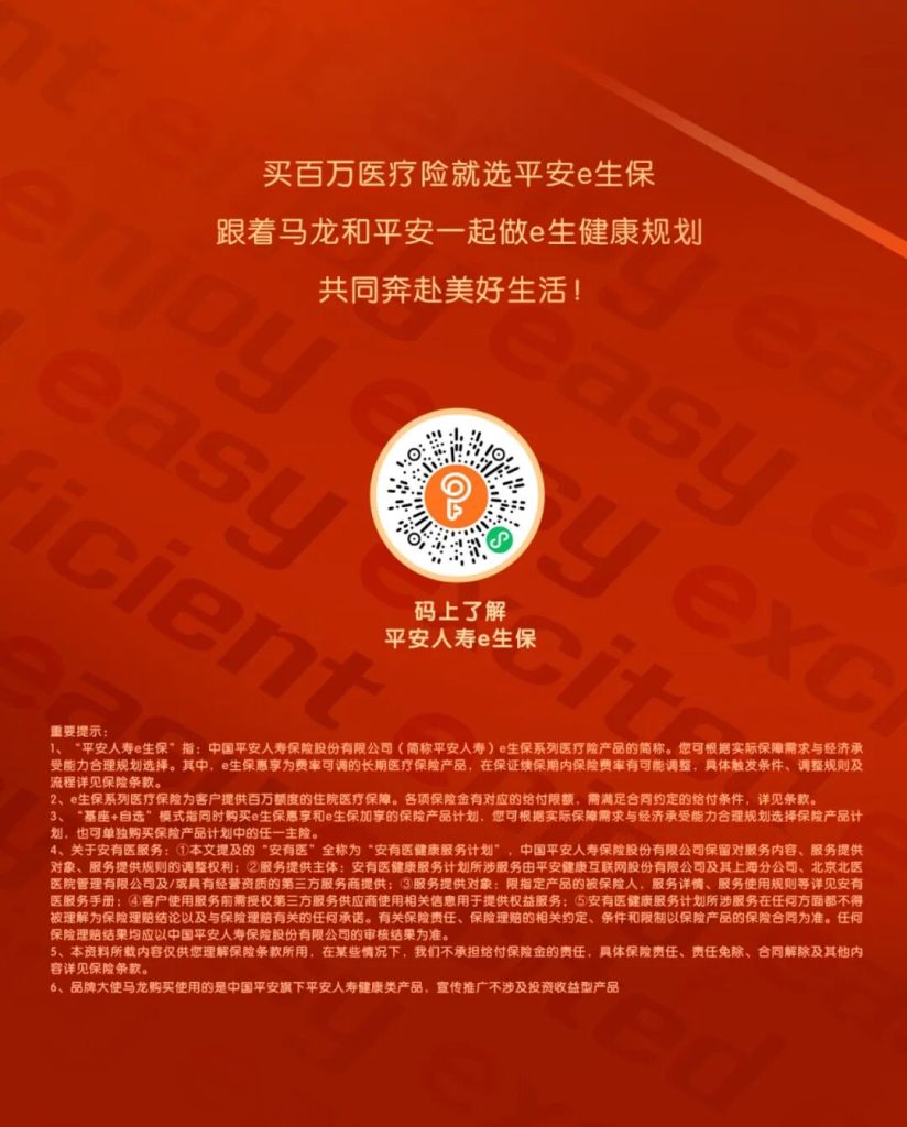 中国平安品牌大使马龙再出马 百万医疗险就选e生保